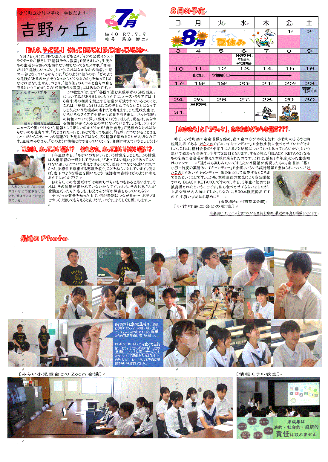 No.40 7月 9日 情報モラル教室・けたこアイス・8月予定・ちがいのちがい