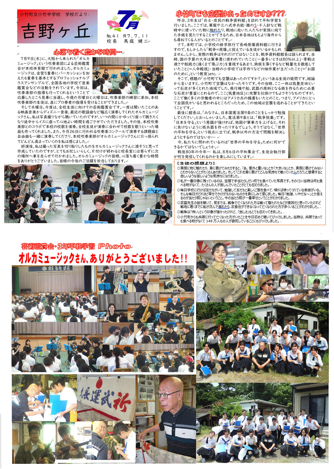 No. 10 7月 1日(まとめの1学期・未来に贈るコンサート・人権学習・平和学習)