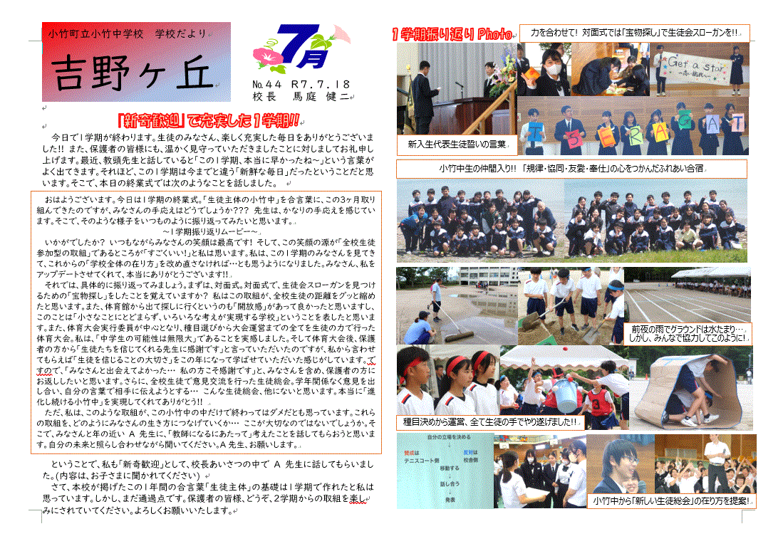 No.44 7月 18日 1学期終業式校長あいさつ・1学期振り返りPhoto