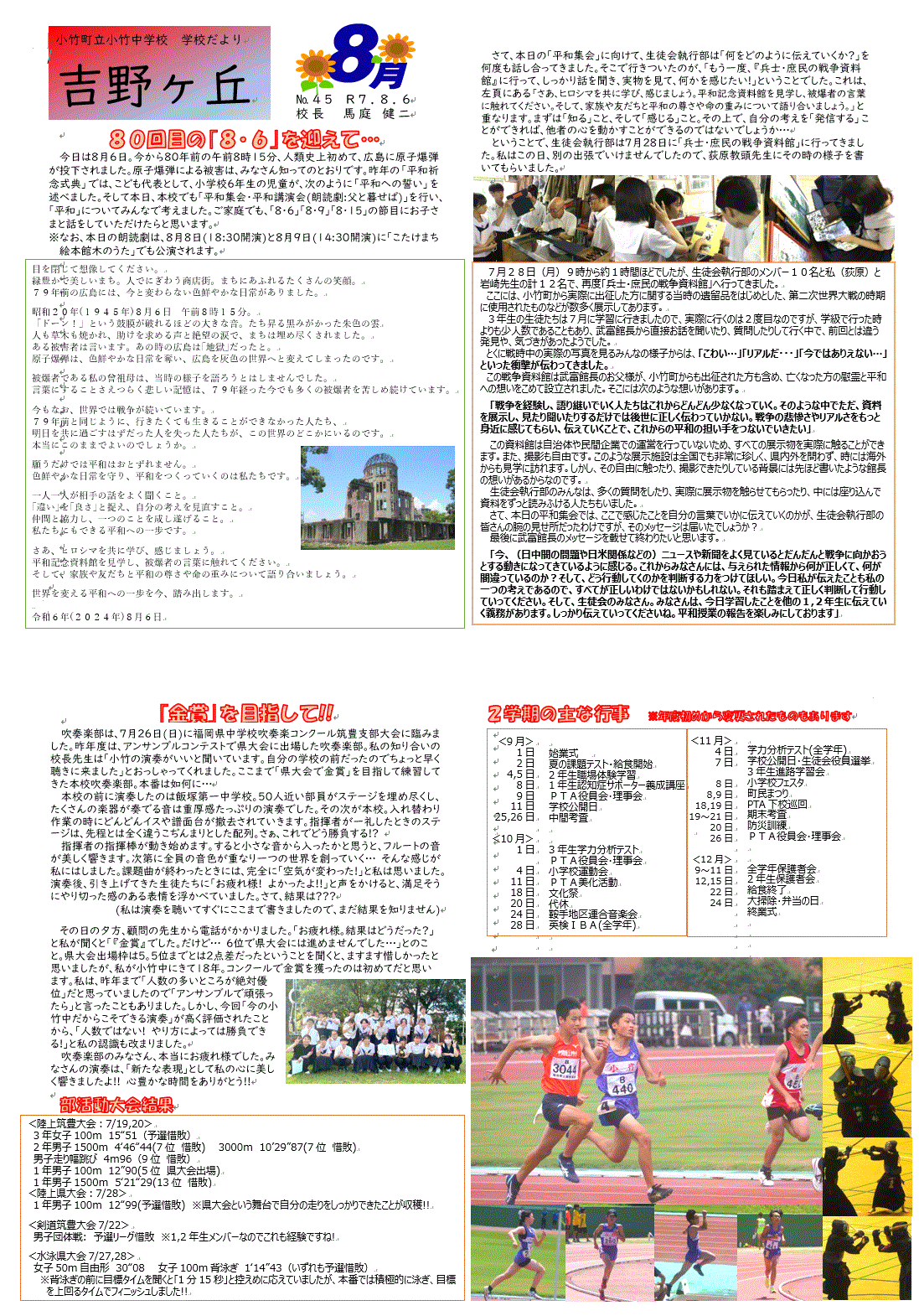 No.45 8月 6日 「8・6」に想う・吹奏楽コンクール・中体連結果