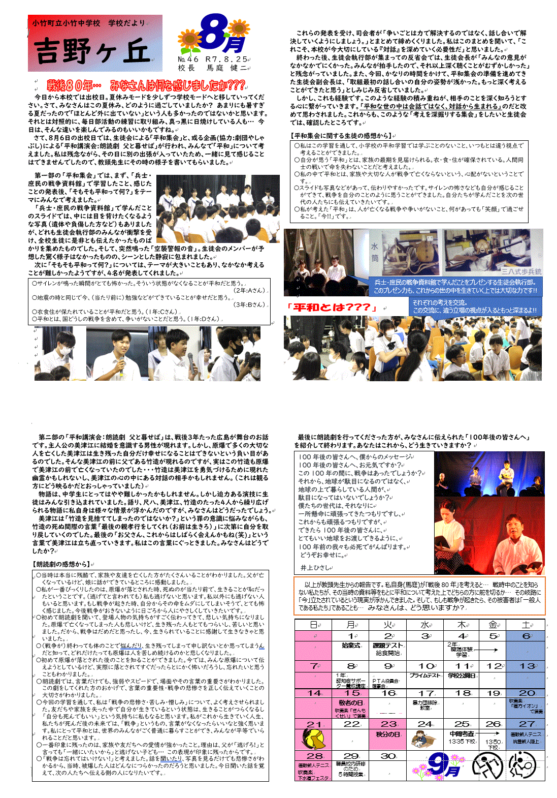 No. 14 8月 5日(平和について考えよう・総合体育大会結果・美術部展示・)