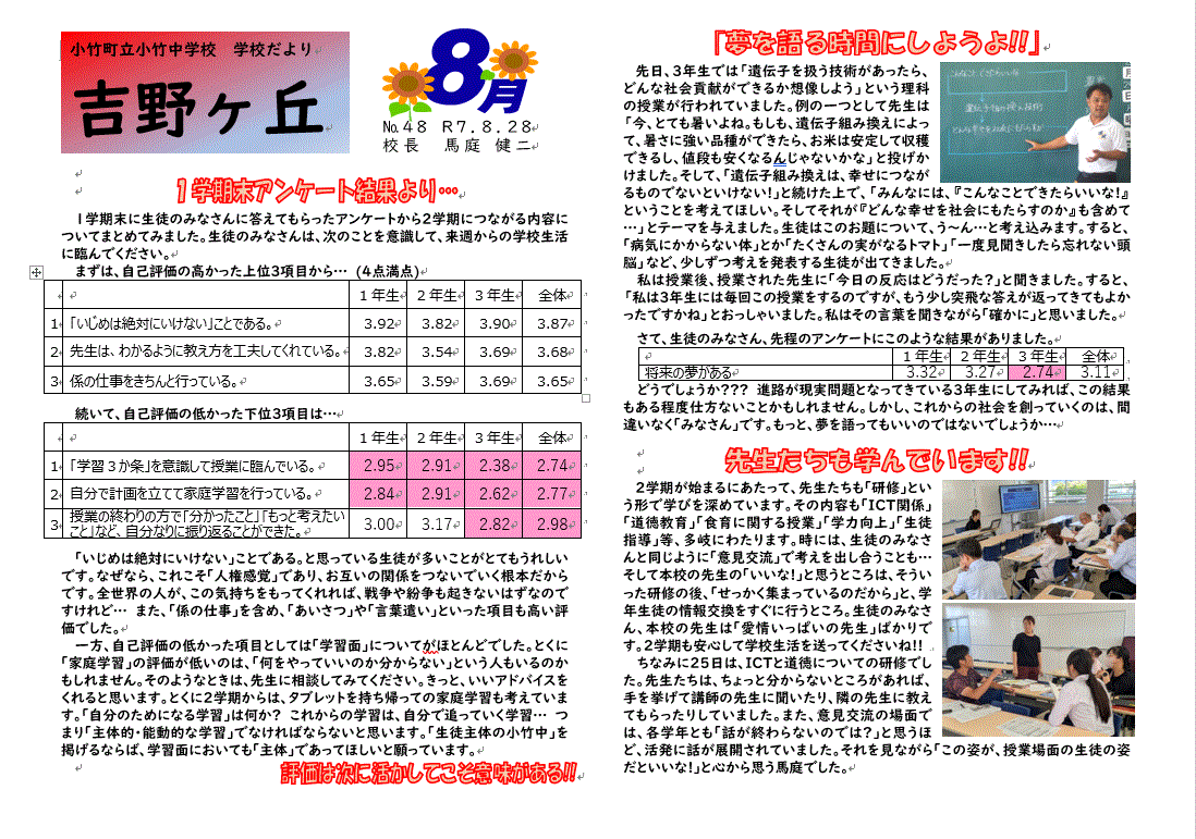 No.48 8月 28日 1学期末アンケート結果を2学期取組に活かす