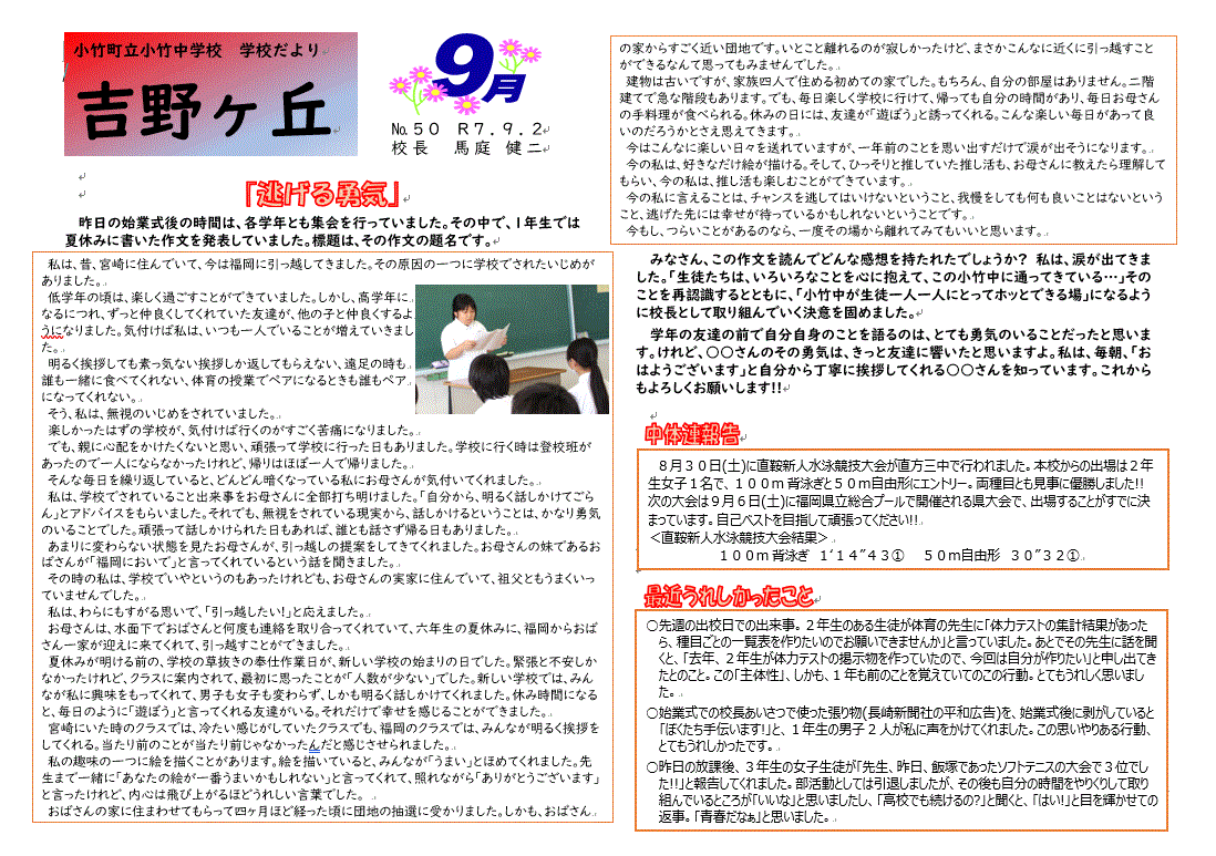 No. 13 9月 1日(体育大会取り組み開始・スマホ宣言・9月行事・吹奏楽祭)