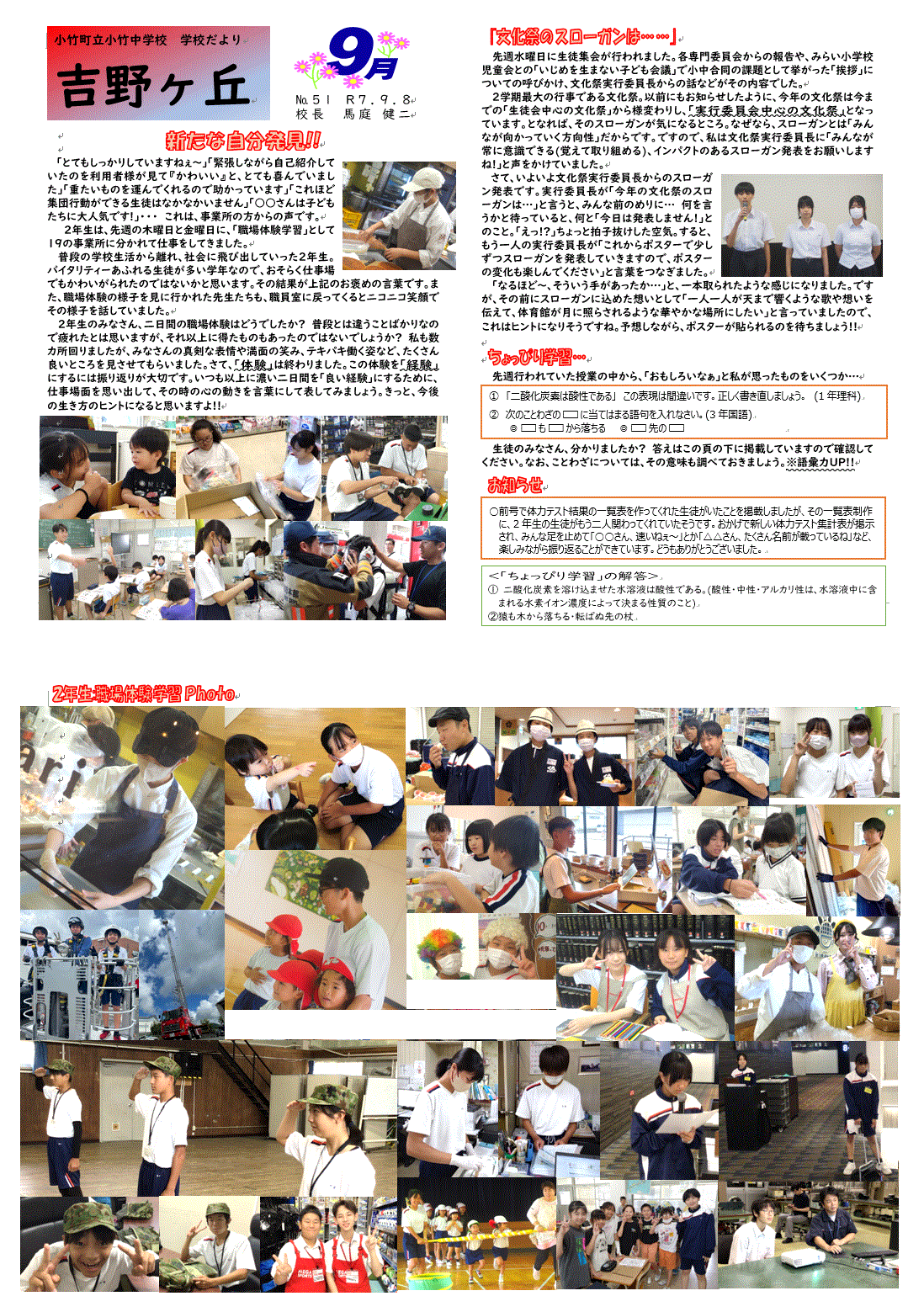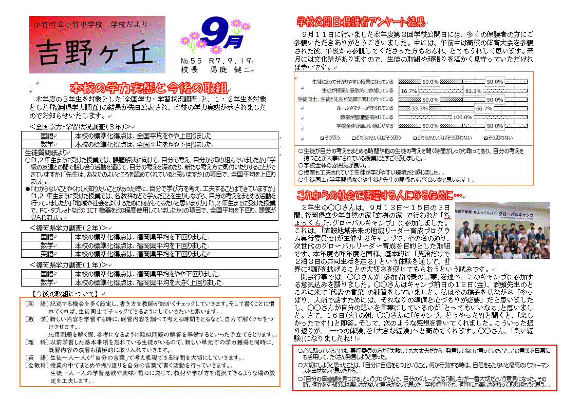 No.55 9月 19日 全国・県学力調査結果・学校公開日アンケート・英語キャンプ