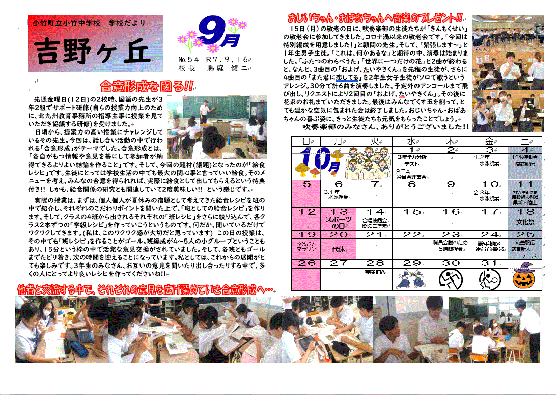 No.54 9月 16日 授業研・敬老の日・10月行事