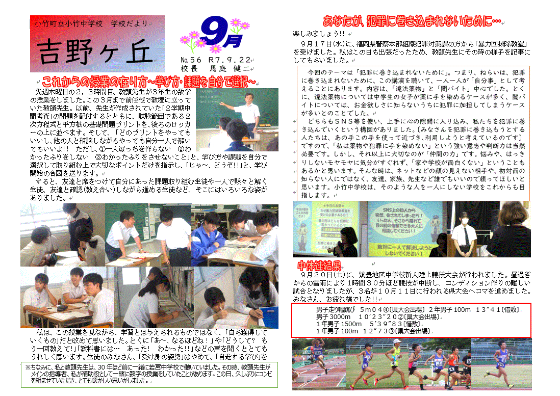 No.56 9月 22日 教頭先生授業・暴力団排除教室・中体連結果